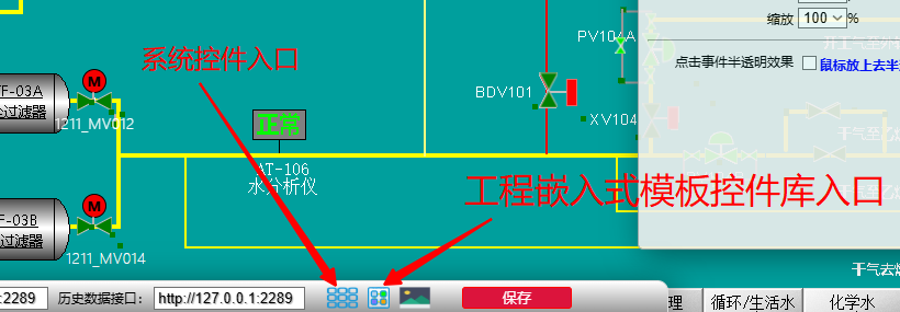打开工程嵌入式模板控件库的路径:工程->HMI->组态->底部栏点击工程嵌入式控件库图标,即可进入。