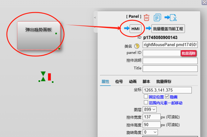 点击模版中的Panel,在配置面板中点击嵌入到当前HMI的图标: