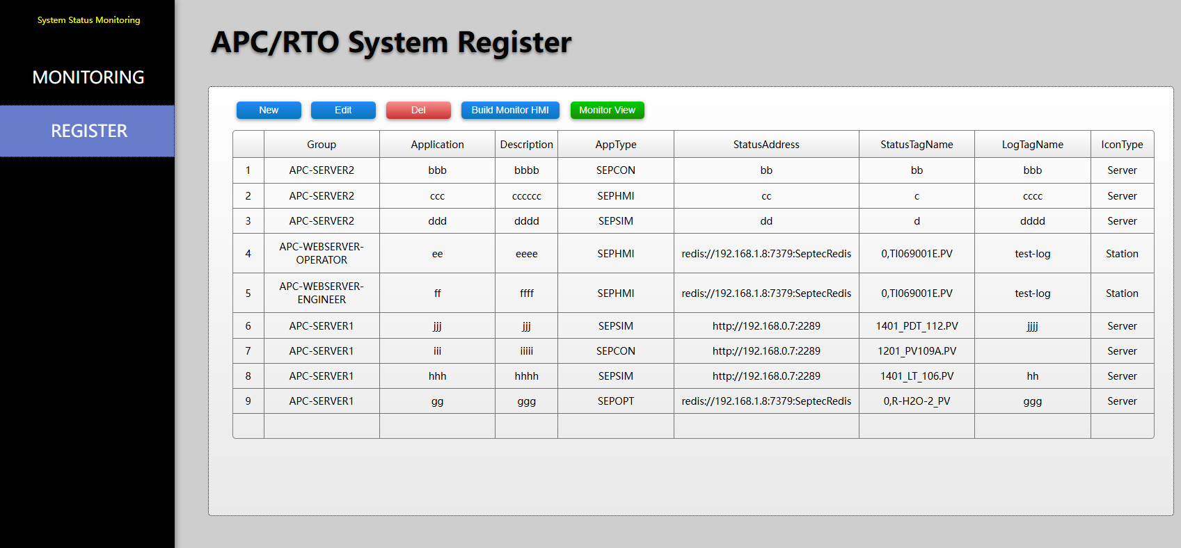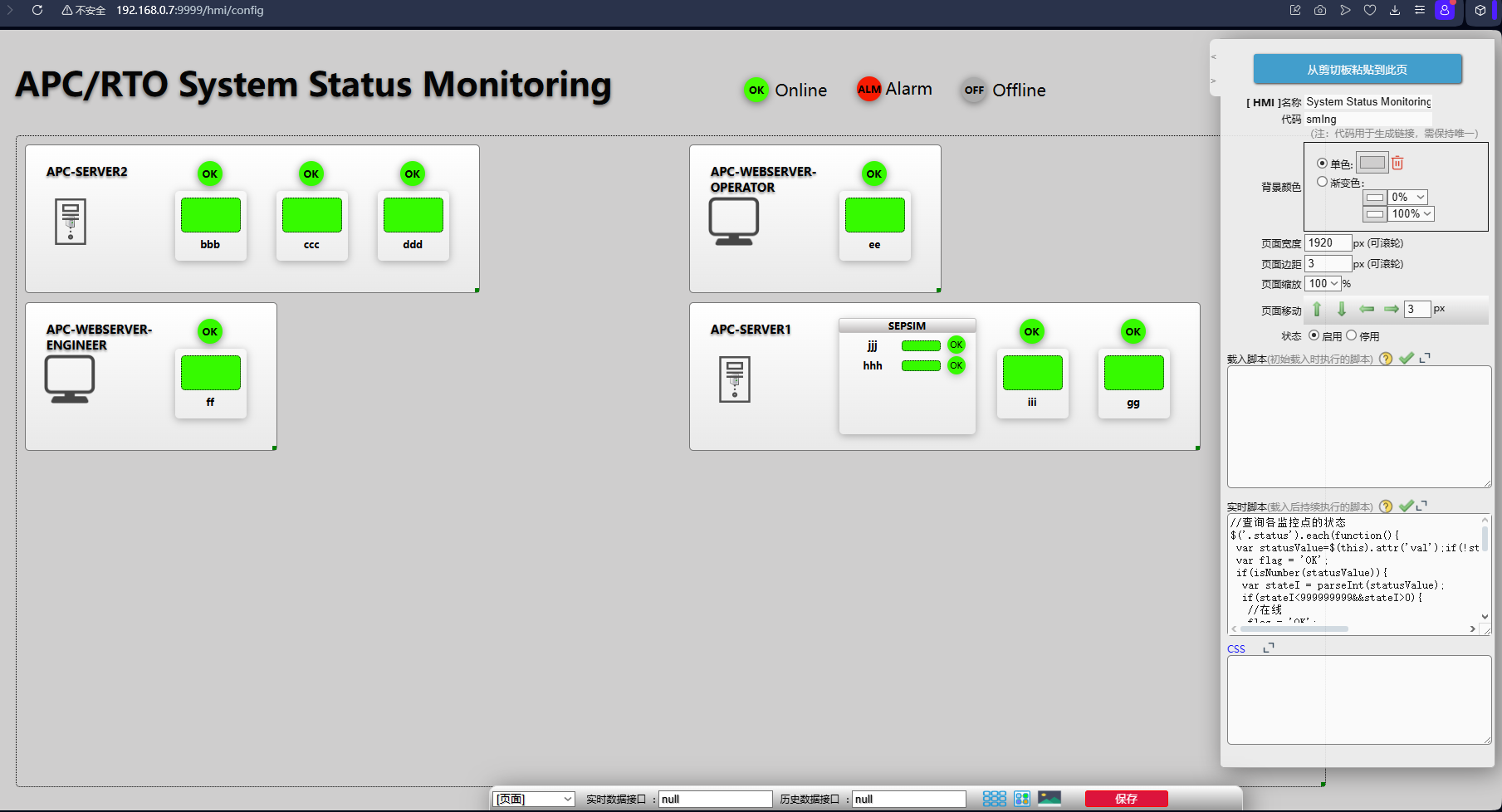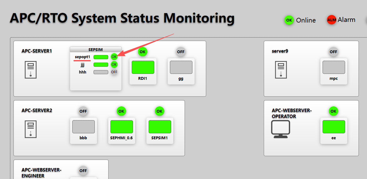 项目中往往需要运行多个SEP软件,包含采集、计算、业务流转、界面等一系列的软件集合,这时候就需要一个画面,来对这些软件进行集中的状态监控,以便在出现故障时及时掌握信息并进行快速定位和处理,确保整套系统长期稳定运行。