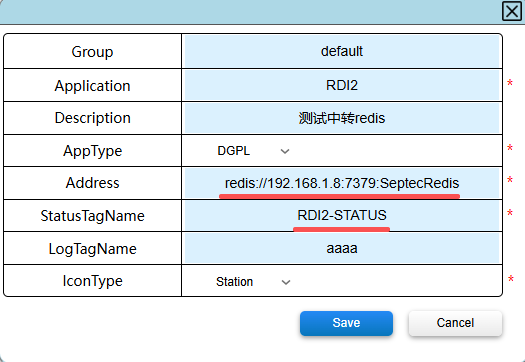 2、在注册界面中配置sephmiB的Address,即sephmiB的状态位号连接地址,在当前通过Redis中转的模式下,此地址则填写Redis的连接地址即可,如:redis://192.168.1.6:9379:SeptecRedis,与5.2.2中配置的任务中的redis一致;